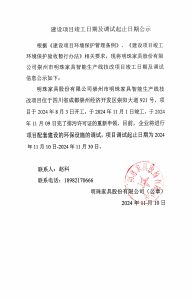 根据《国务院关于修改〈建设项目竣工竣工环境保护管理条例〉的决定》(国务院令第682号),以及环保部《关于发布<建设项目竣工环境保护验收暂行办法>的公告》(国环规环评[2017]4号),现将“明珠家具股份有限公司崇州市明珠家具智能生产线技改项目”竣工日期及调试起止日期公示如下: